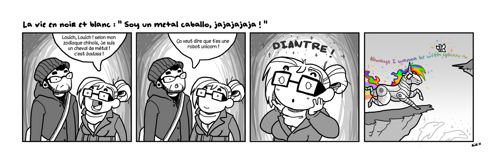 Cette semaine, entre deux coups de fatigue intense, on a eu une belle conversation sur les zodiaques chinois et l'élément qui leur appartenait. Selon l'astrologie chinoise, je suis un cheval de métal et c'est plutôt badass, on va se l'avouer (mais ça ne battra pas le tigre de feu tout de même). Je n'avais pas poussé la réflexion plus loin et quand mon bon ami Louis-Charles s'est mêlé à la conversation, il m'a fait réaliser que j'étais en fait la très célèbre Robot Unicorn!